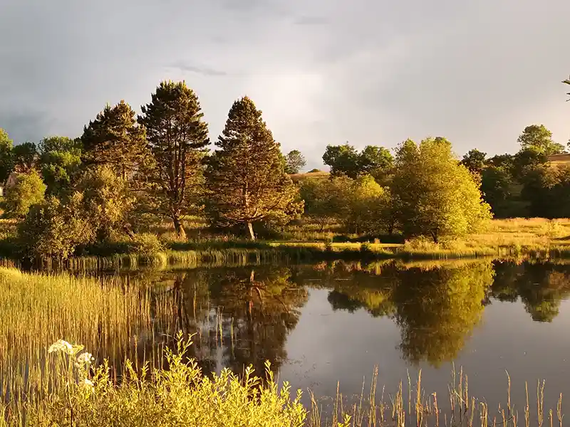 Ce réservoir de 3 hectares, profond de 7 mètres, est alimenté par des sources de première catégorie, garantissant une eau pure et fraîche.