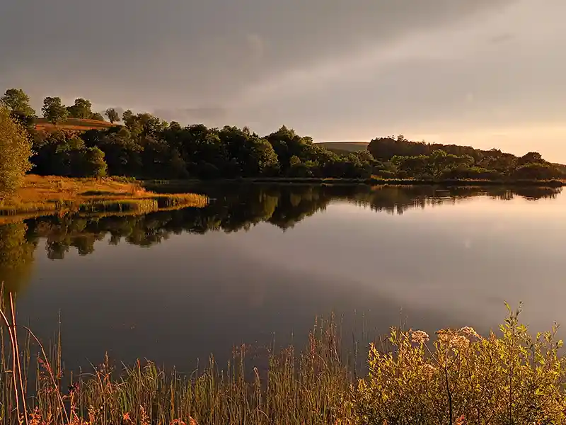 Ce réservoir de 3 hectares, profond de 7 mètres, est alimenté par des sources de première catégorie, garantissant une eau pure et fraîche.